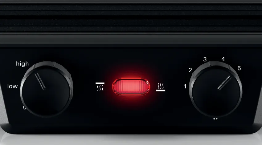 - Separate temperature controls for the top and bottom barbecue surface, ensuring that food is always cooked to an ideal degree.
