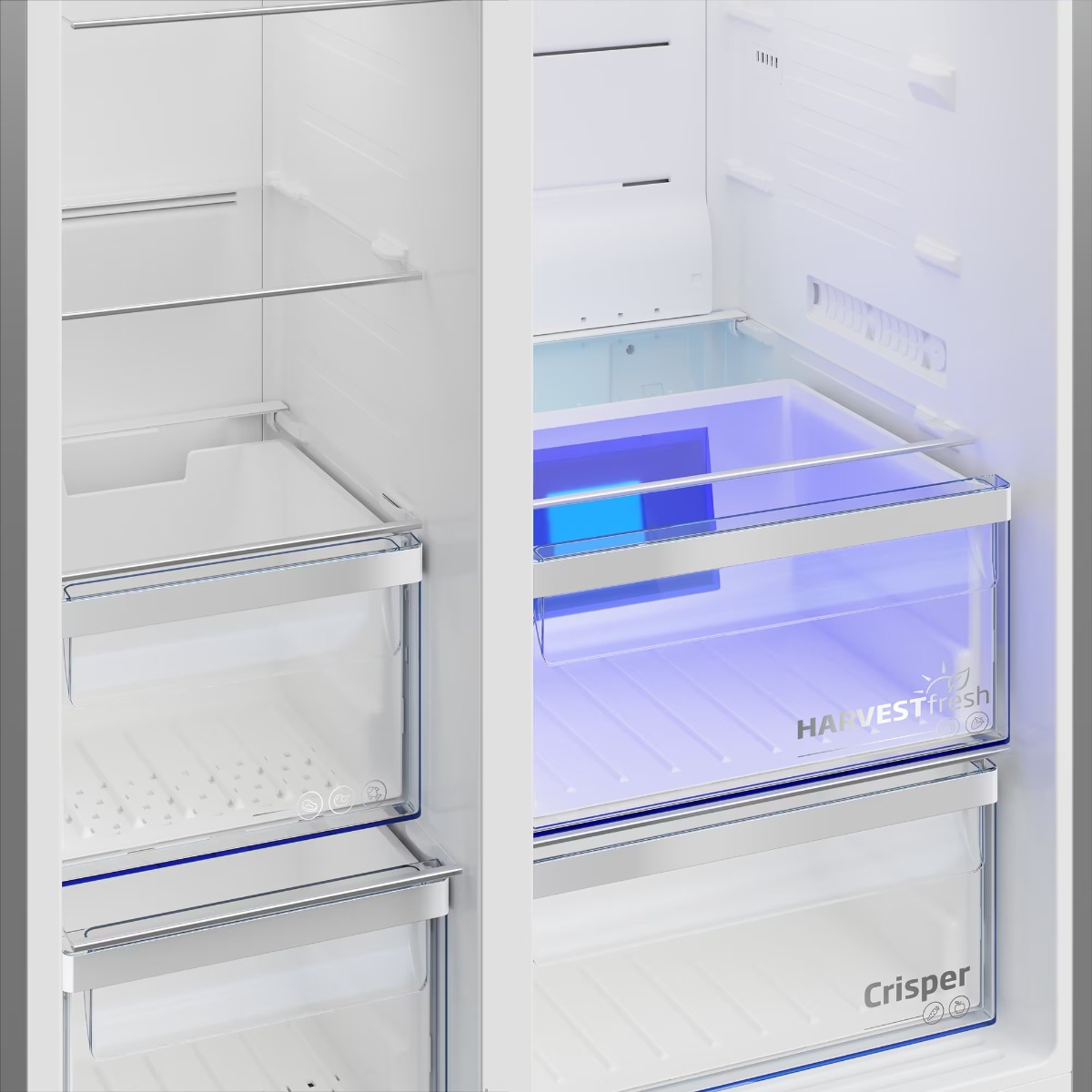 Beko Freestanding Side By Side Digital Refrigerator, No Frost, 2 Doors, 651 Litres, Inverter Motor, Silver – GN166130XB