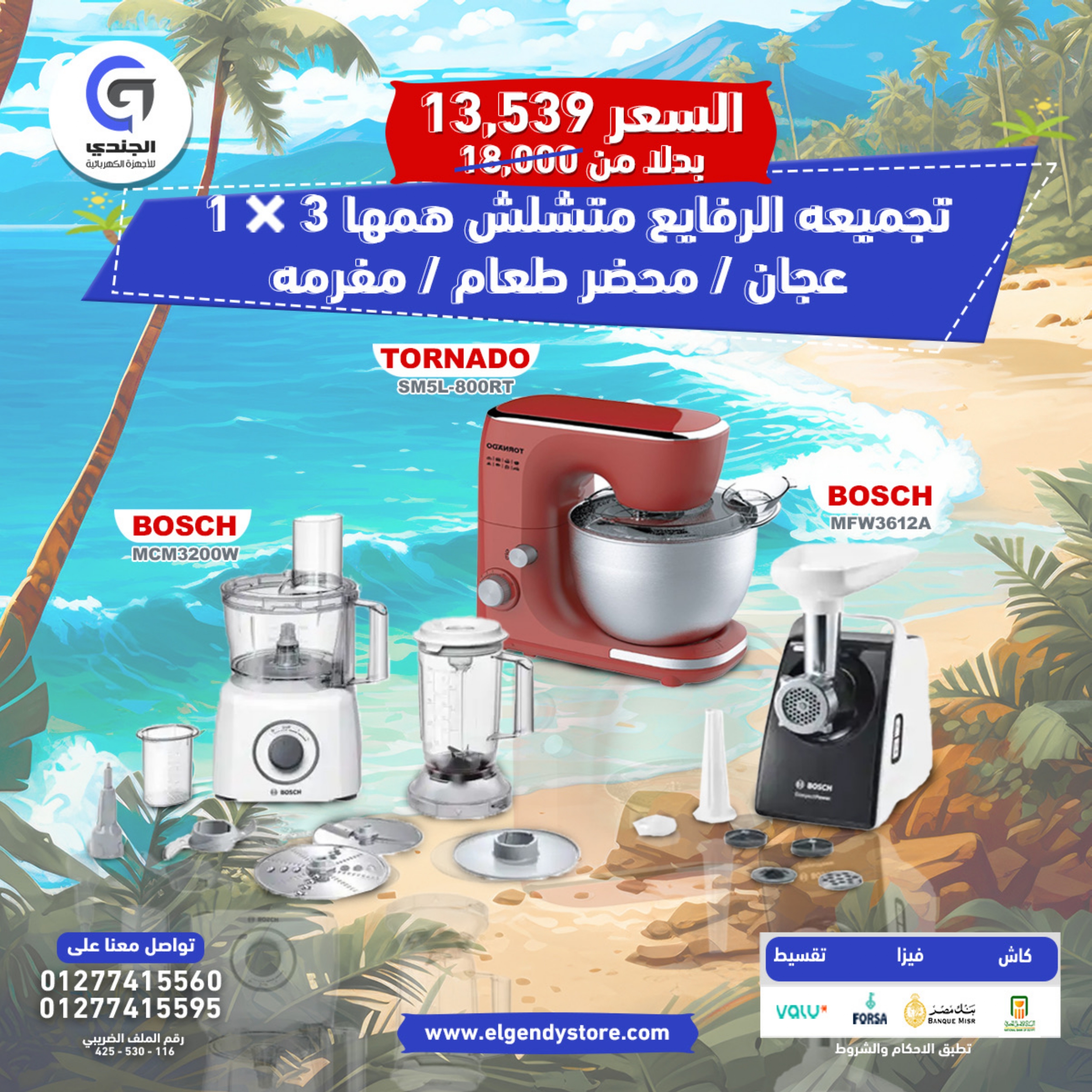 Small Appliances Offer 3×1 – TORNADO Kitchen Machine SM5L-800RT/Bosch Food Processor MCM3200W/ Bosch Meat Grinder MFW3612A تجميعه الرفايع متشلش همها