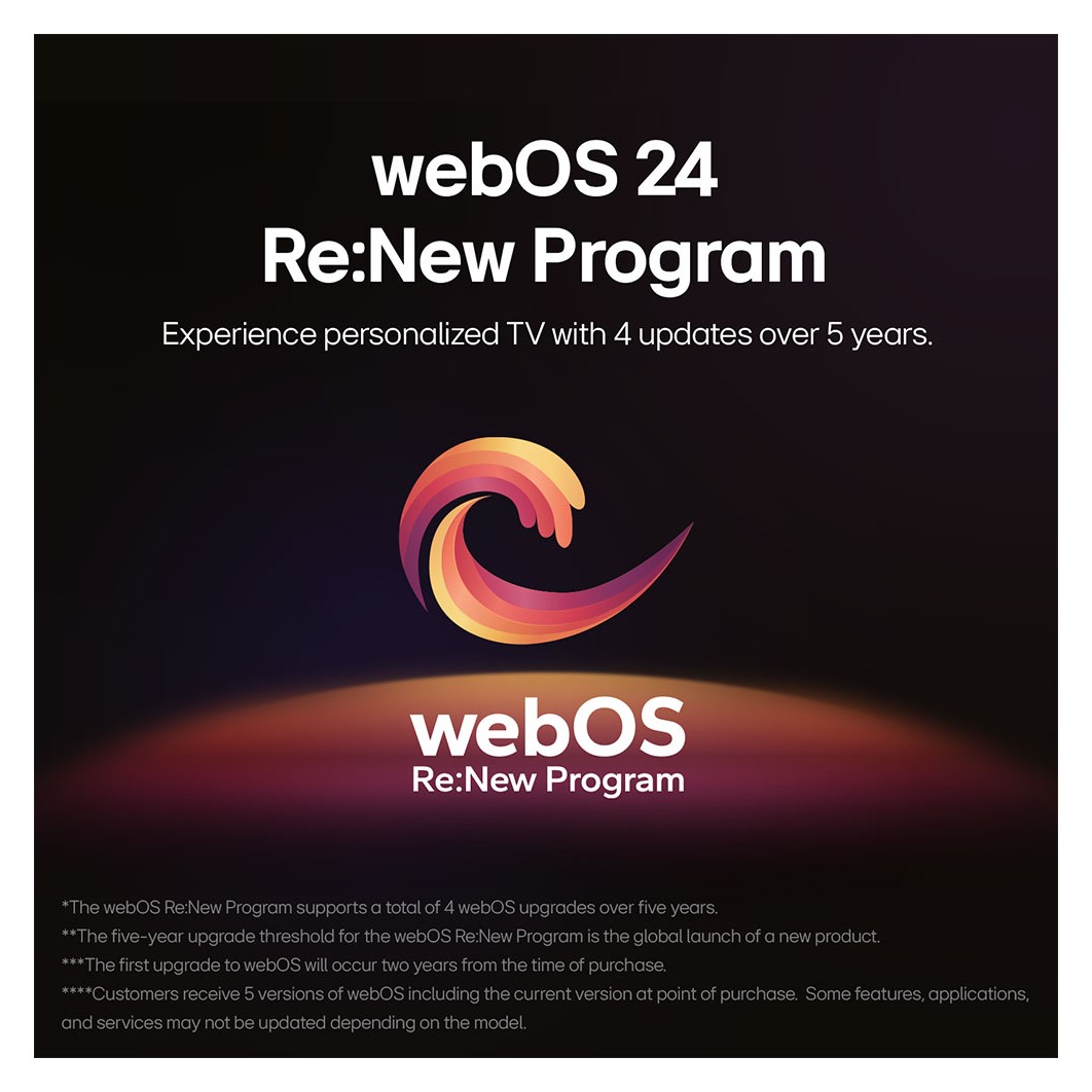 • To ensure long-term support and enhancements, the webOS Re:New Program offers customers four major upgrades to their webOS system over the next five years. This ensures that the TV’s operating system stays up-to-date with the latest features and improvements.