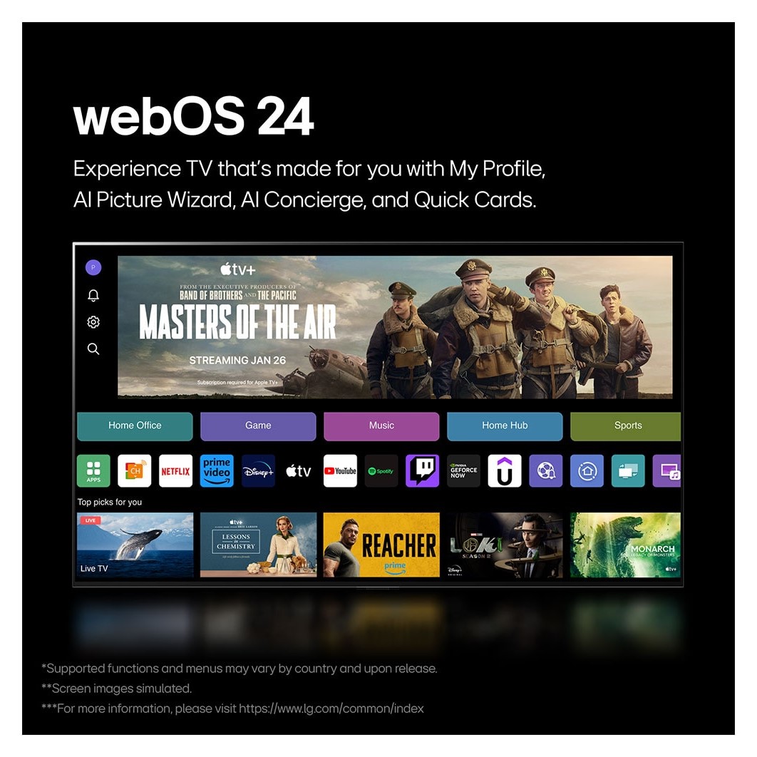• webOS 24 also features Mobile Connectivity for easy casting from iPhone or Android devices with Apple AirPlay and Chromecast.